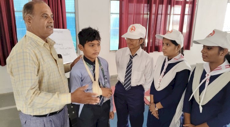 जे.आर.सी. कैम्प के चौथे दिन बच्चों ने सीखी प्राथमिक उपचार की बारीकियाँ,