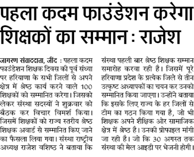Latest News - Pahla Kadam Foundation